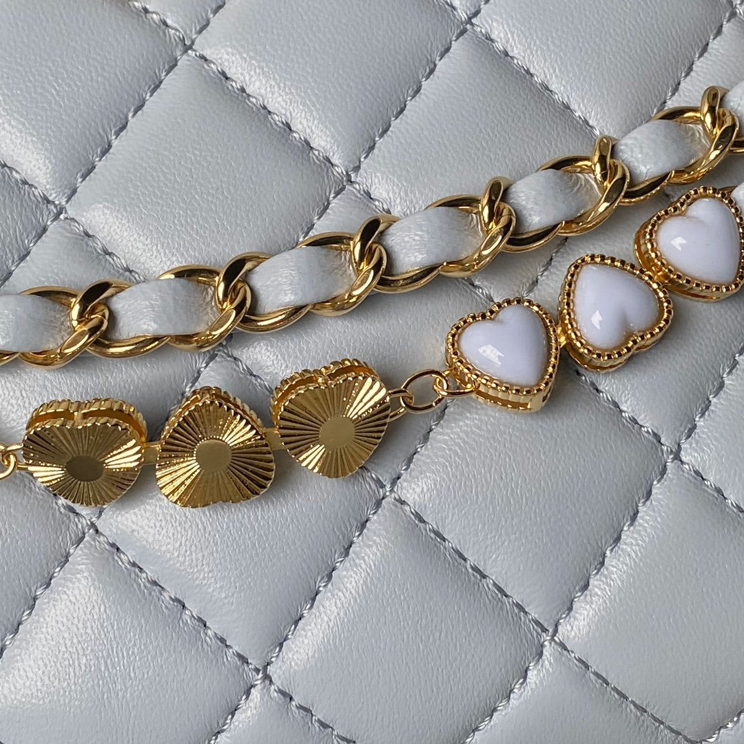 24p clutch with chain 19cm turquoise blue lambskin