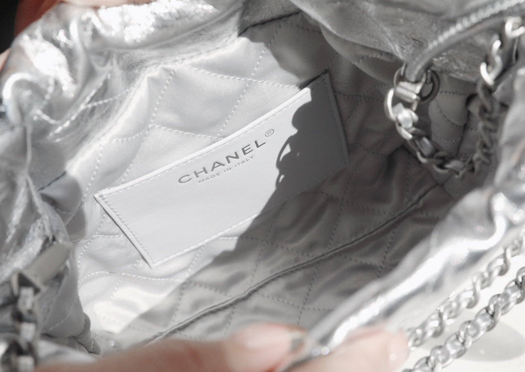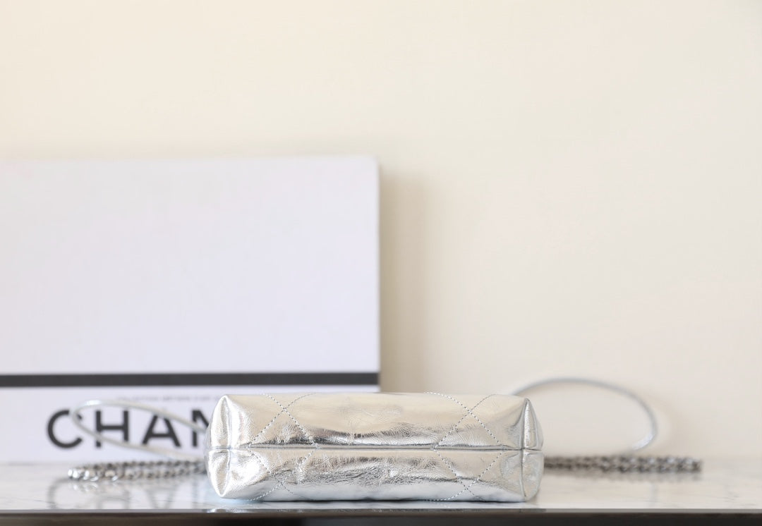 25C Hobo 22 Bag 19cm Silver Metalic Lambskin