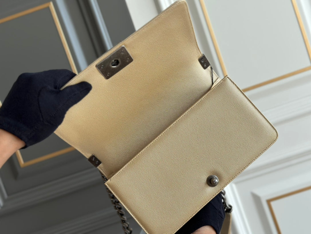 boy medium 25 beige chevron caviar ruthenium hardware