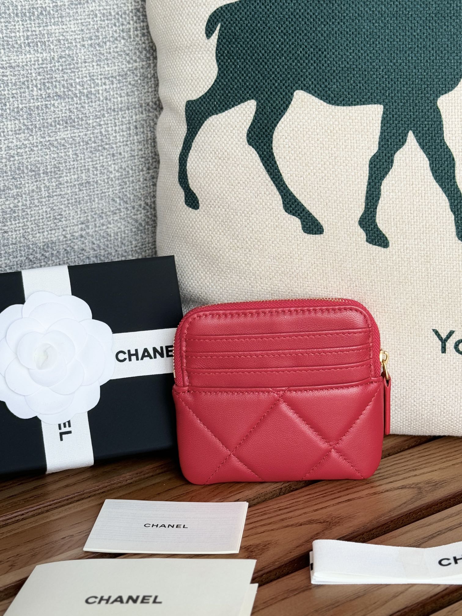 cc 19 zipped coin purse 11cm black lambskin gold hardware