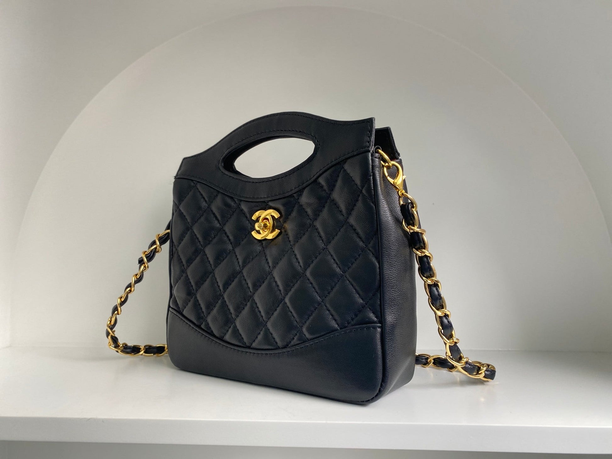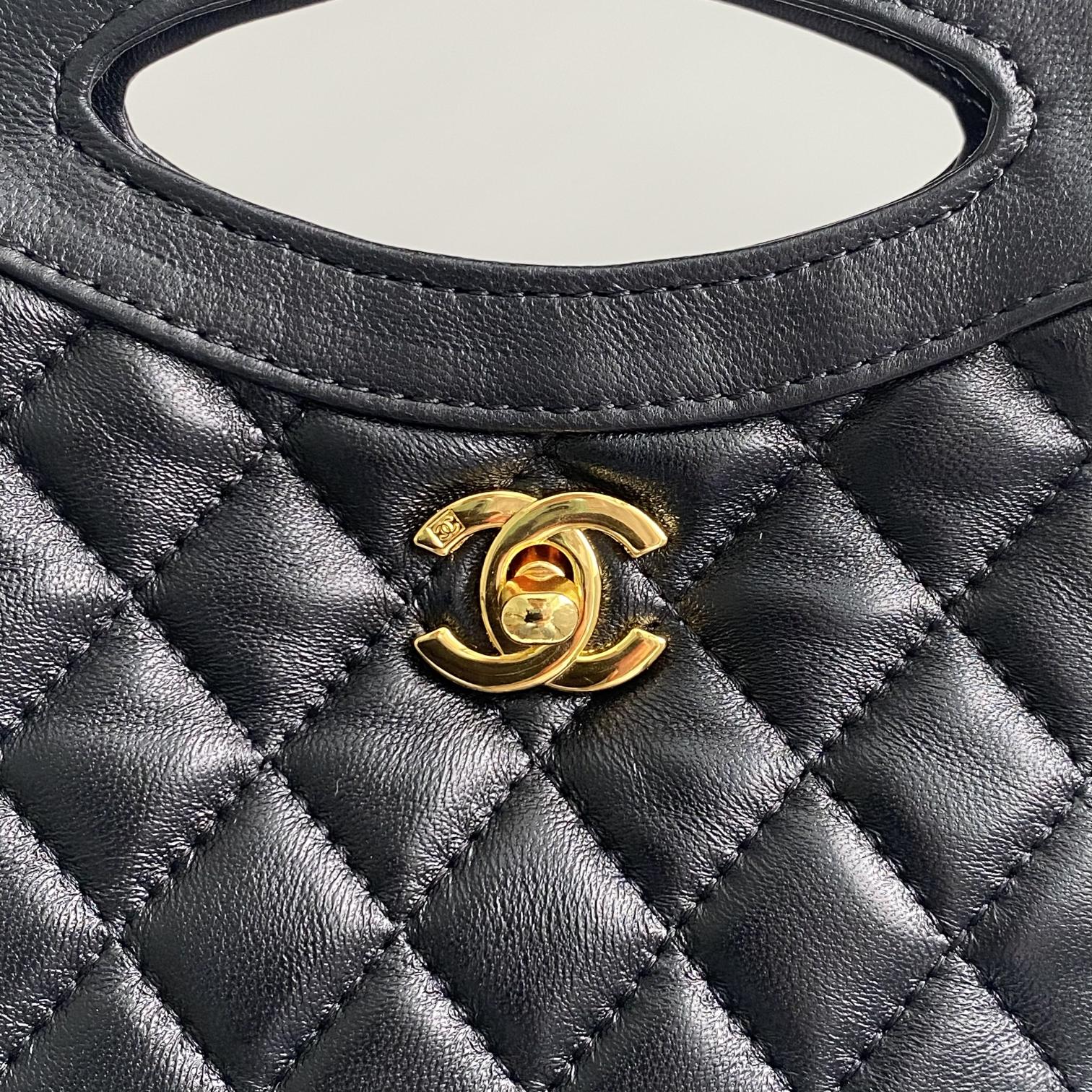 cc 22 hobo 35cm black quilted calfskin gold hardware