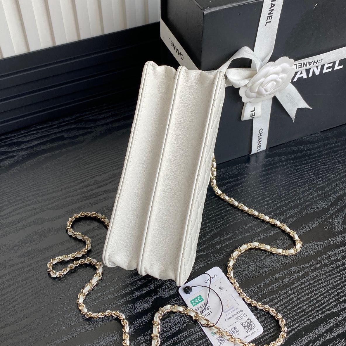 CC 24B Trendy Bag 18.5cm White Lambskin Gold Hardware