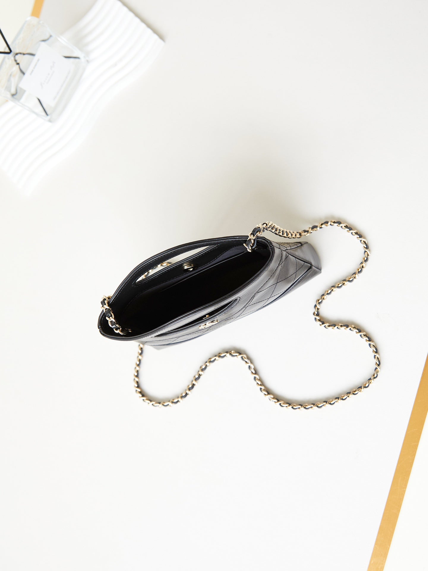 cc 24s31 nano shopping bag 17.5cm black lambskin gold hardware
