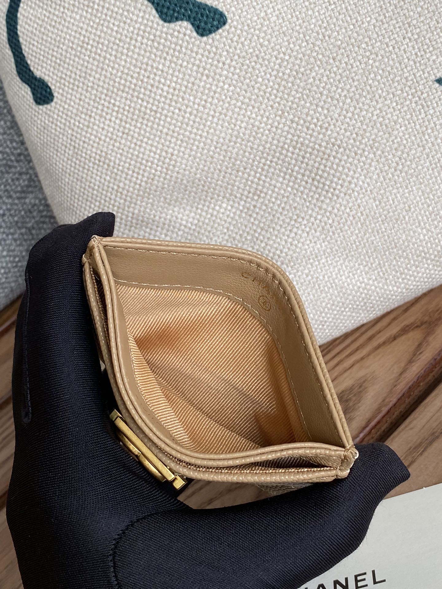 cc boy 11cm card holder beige caviar gold hardware