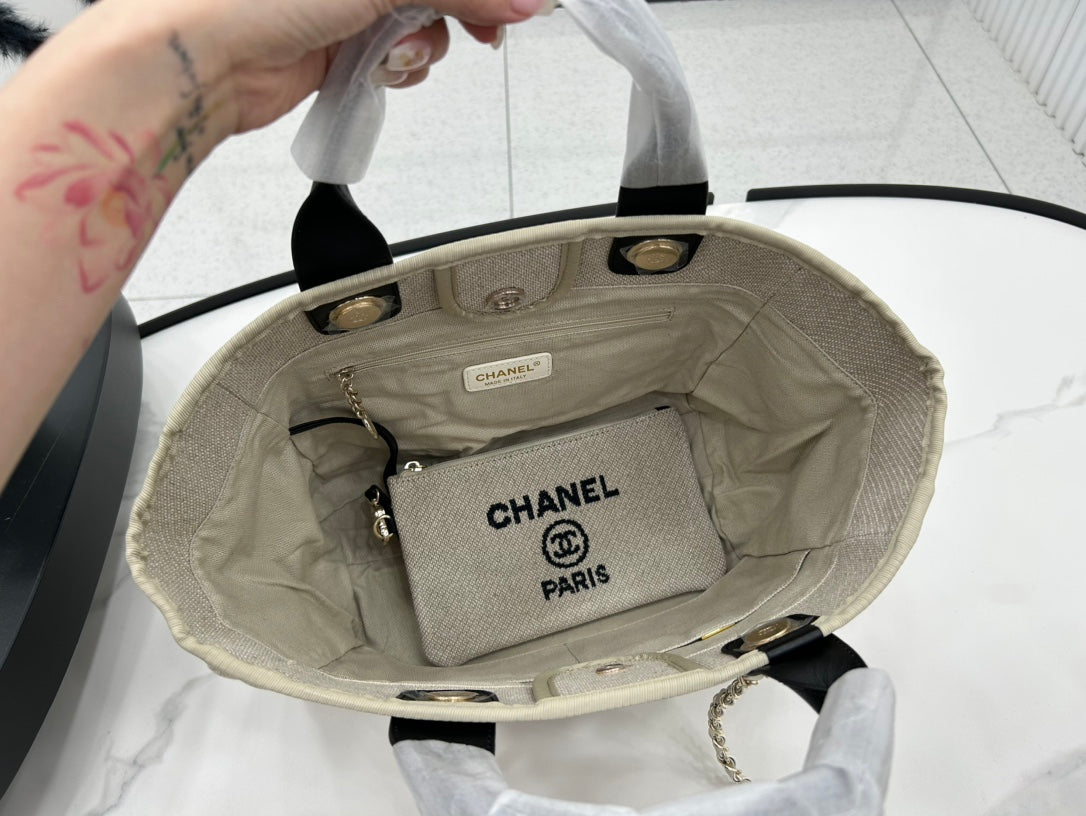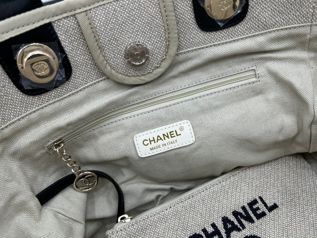 CC Deauville Tweed Bag 33x26x15.5cm Black Leather Gold Hardware 35