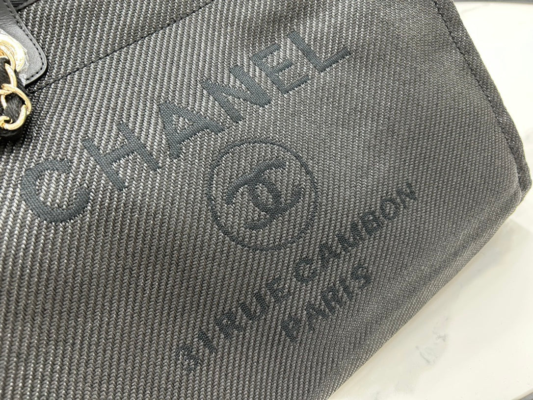 CC Deauville Tweed Bag Black Leather Gold Hardware 24