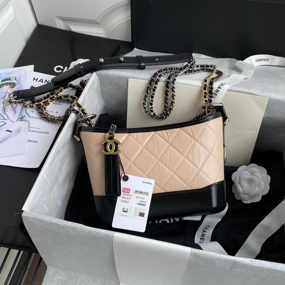 CC GABRIELLE SMALL 20CM HOBO BAG BEIGE BLACK CALFSKIN