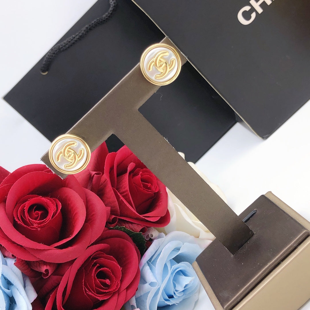 CC GOLD WHITE ENAMEL CIRCLE EARRINGS