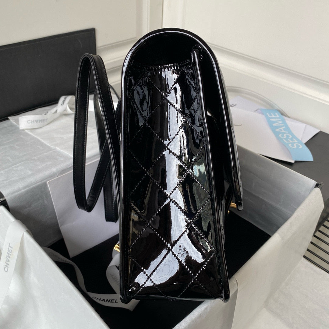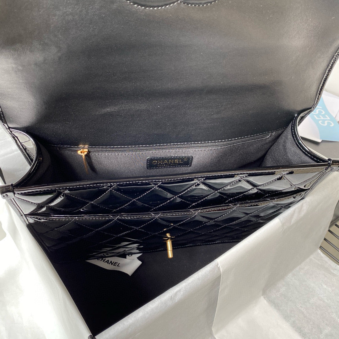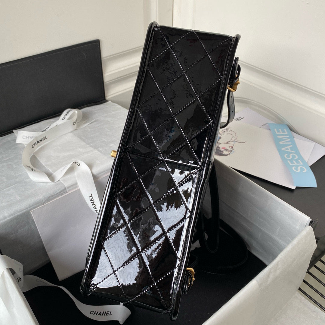 cc large backpack 31cm black patent calfskin gold hardware