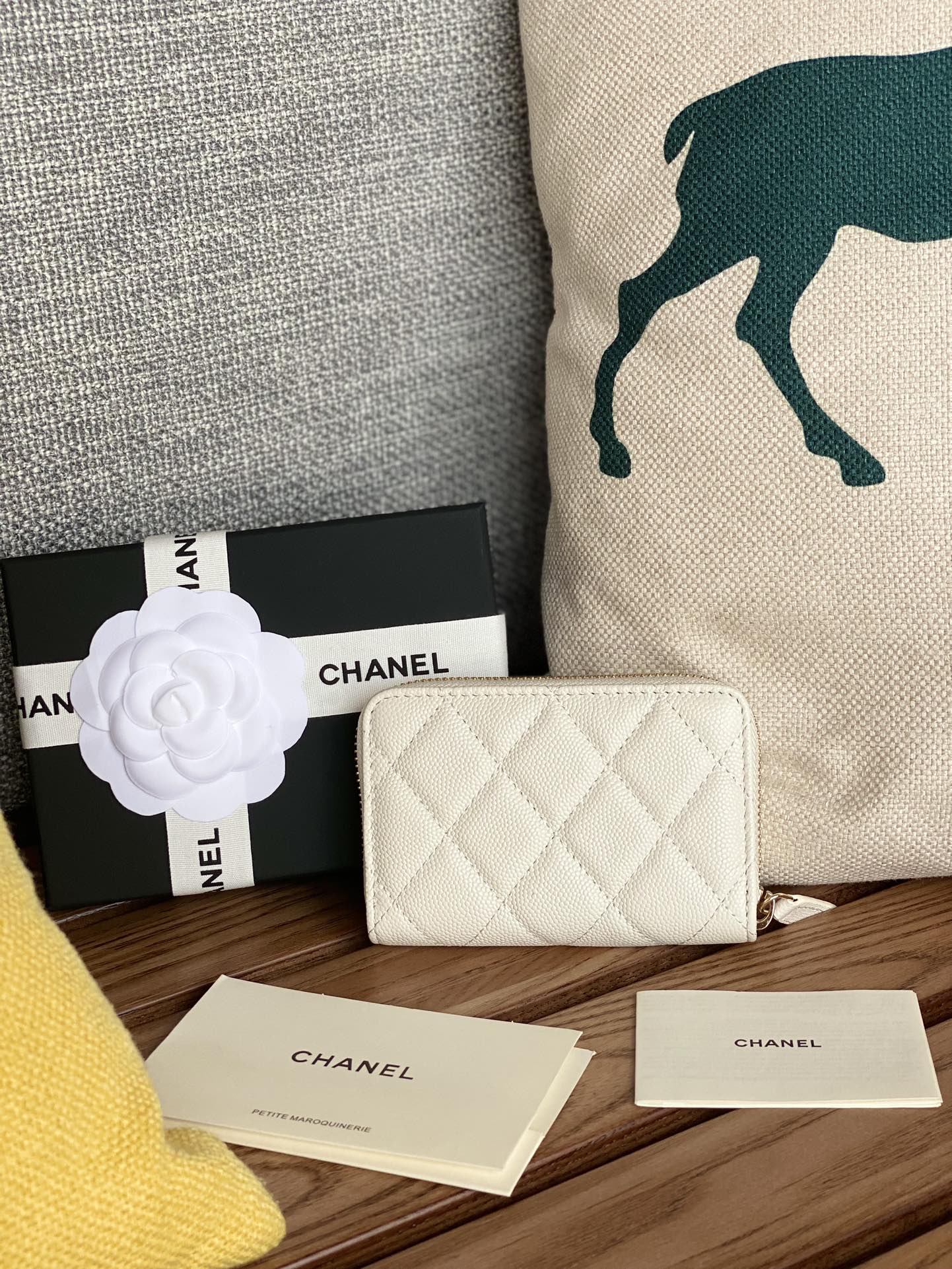 cc zipped wallet 11cm white caviar gold hardware