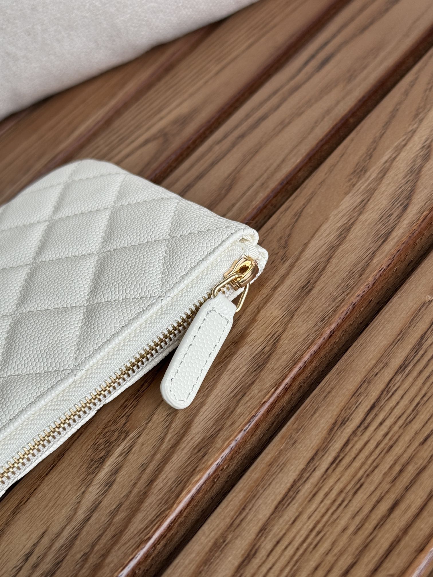 cc zipped wallet 20cm white quilted caviar gold hardware