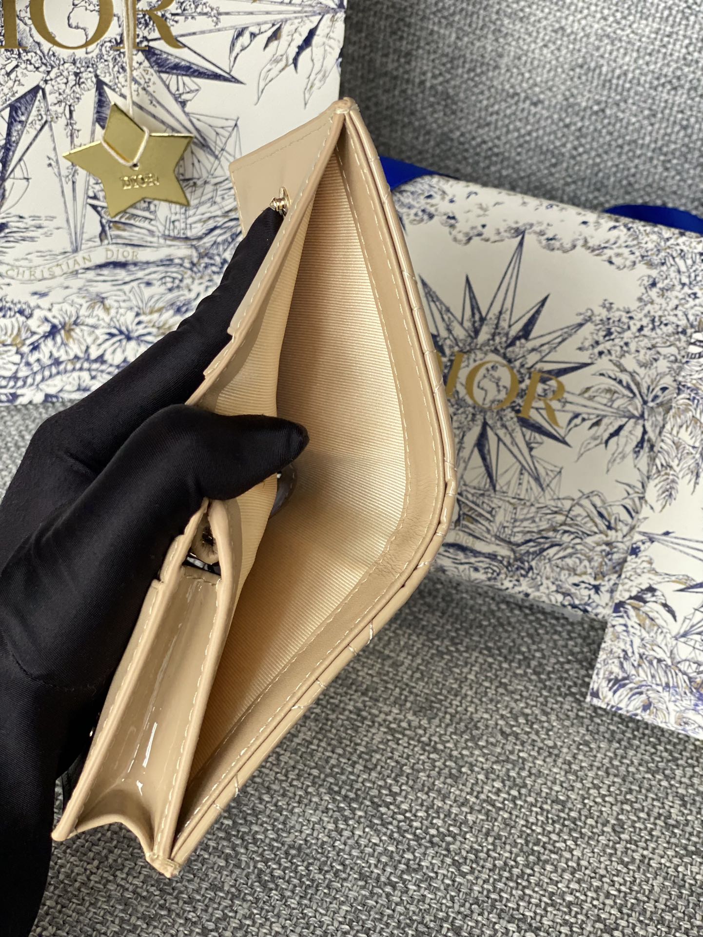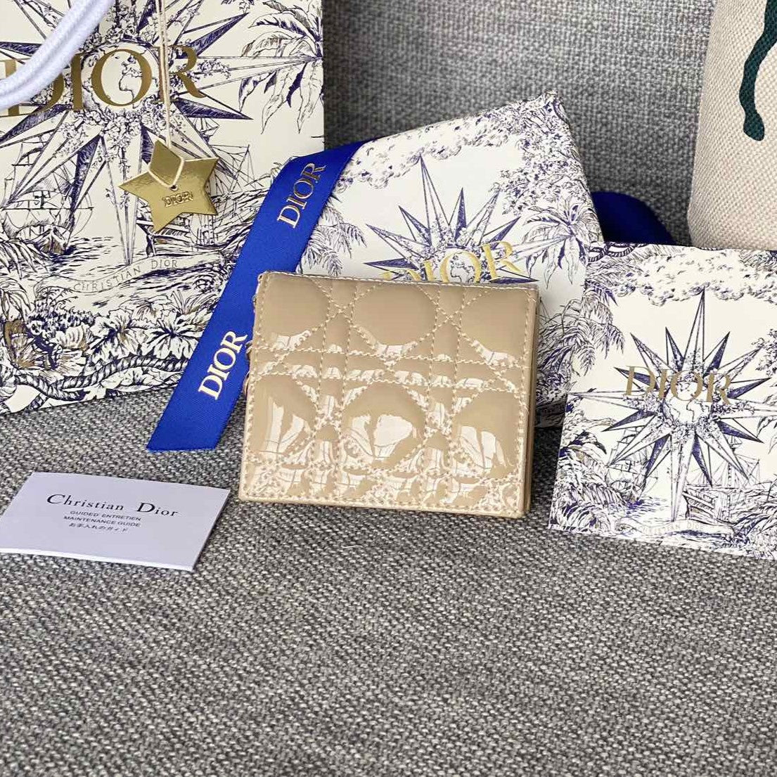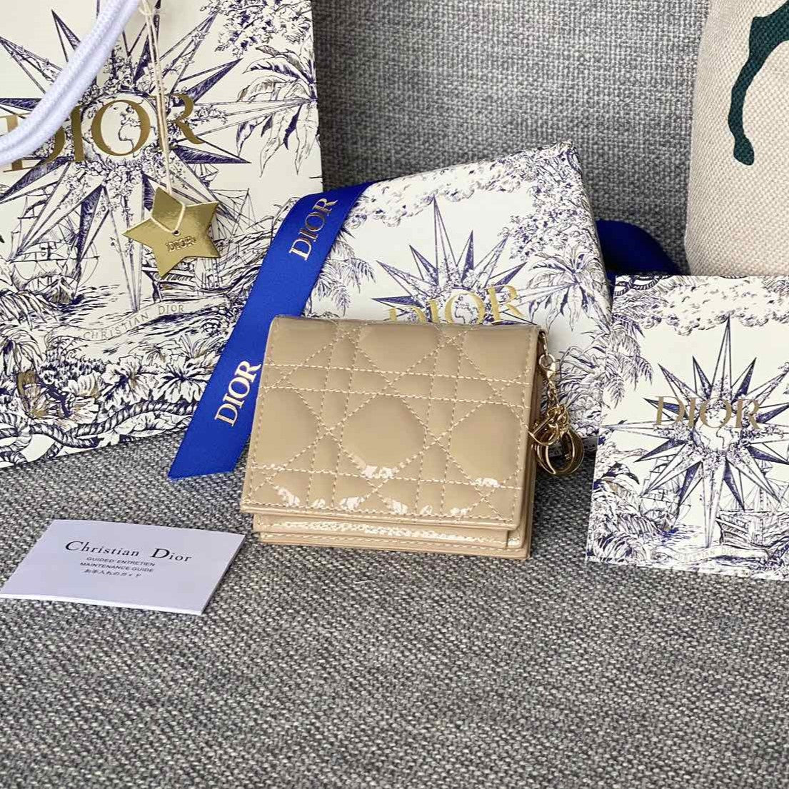 CD Caro 11cm Compact Wallet Shiny Beige Calfskin