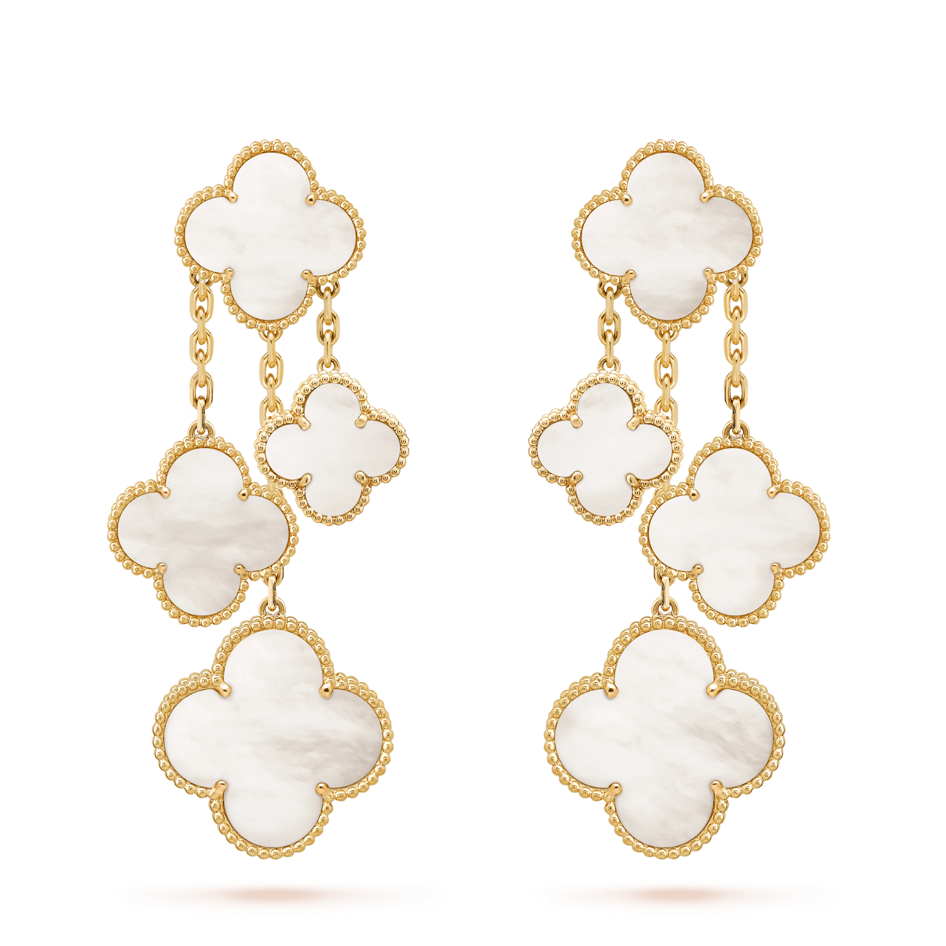 DIANA CLOVER EARRINGS WHITE MOP 4 MOTIFS GOLD