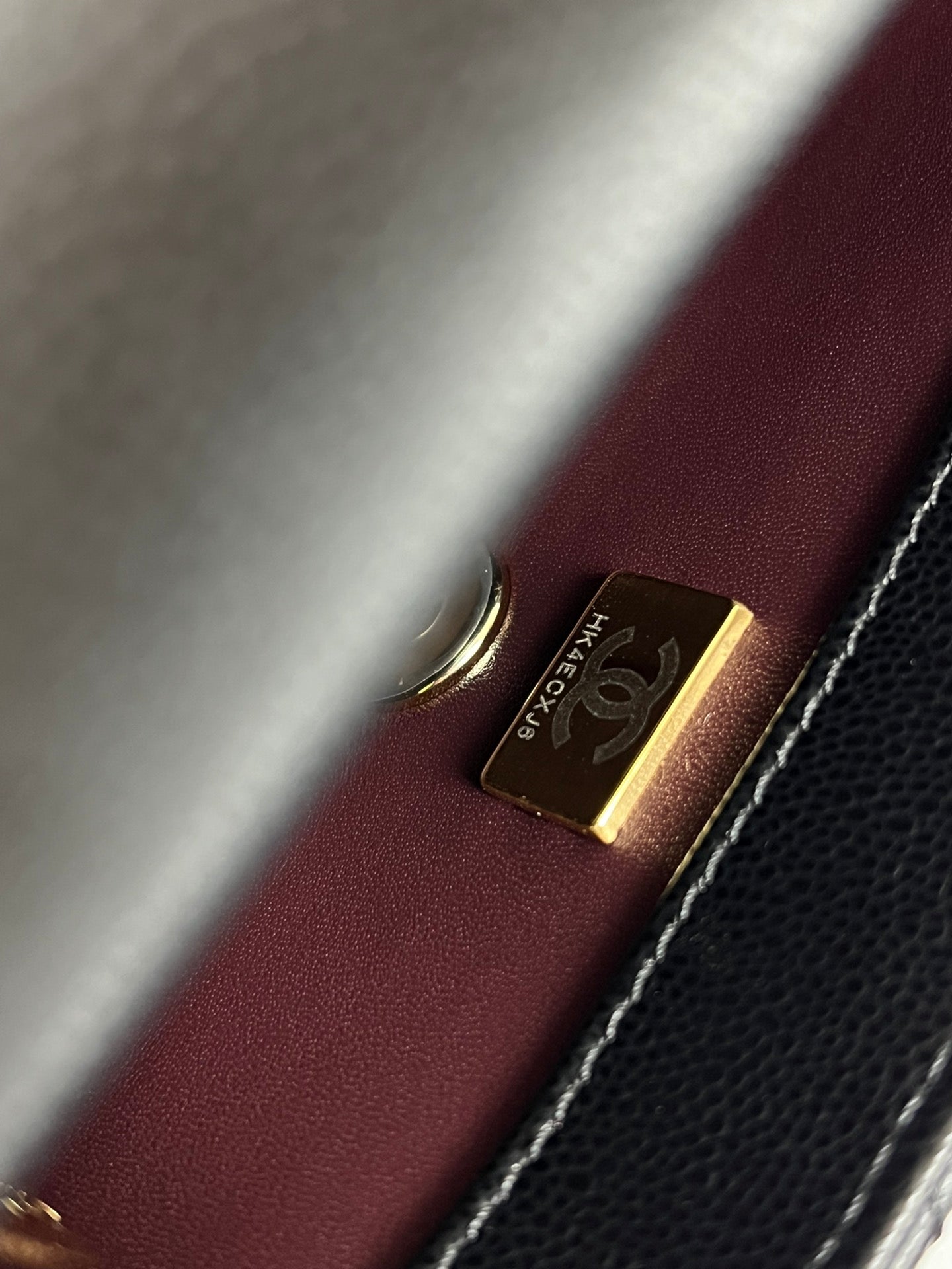Coco Handle Flap Bag 19cm Black Grained Calfskin Gold Hardware