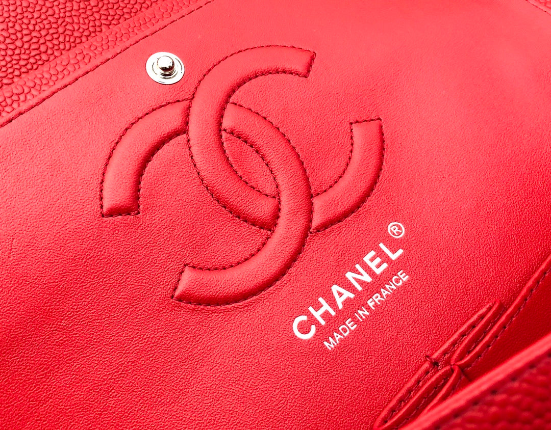 FLAP BAG MEDIUM 25CM RED CAVIAR SILVER HARDWARE