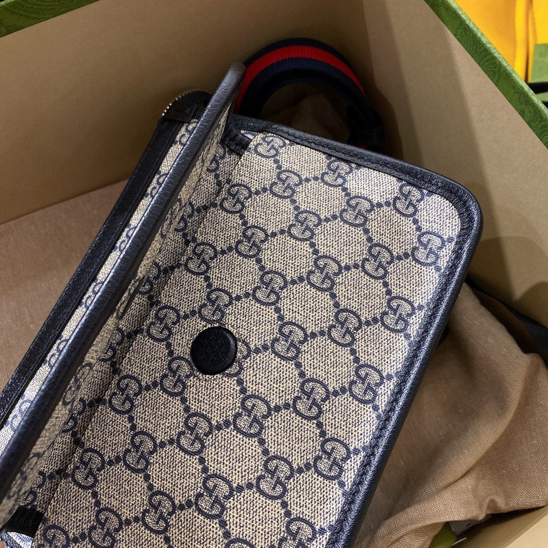 GG SMALL 21 CROSSBODY BAG WITH TAG IN BEIGE CANVAS AND BLACK CALFSKIN