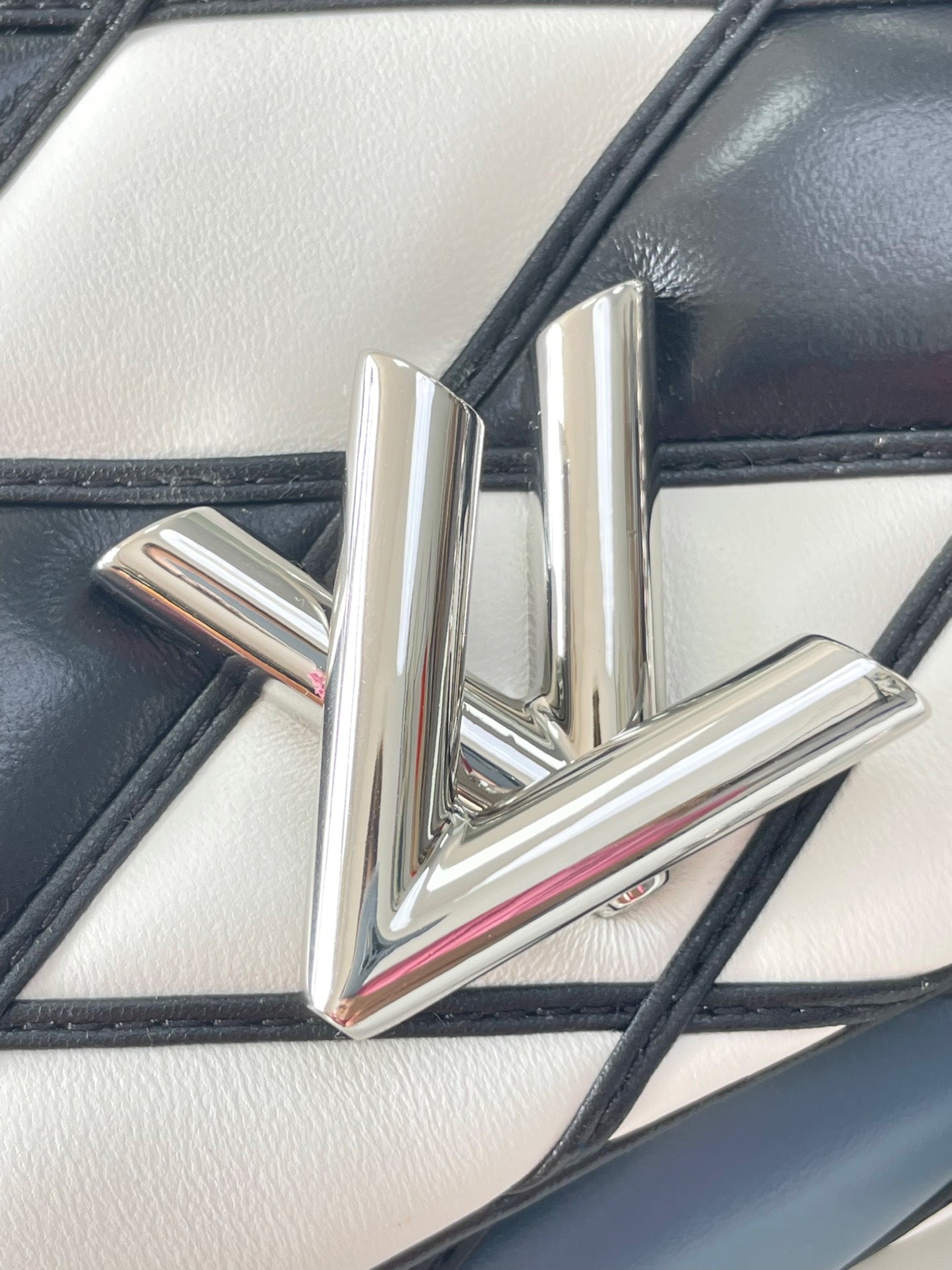GO-14 MM 23 IN WHITE BLACK MIX STEEL BLUE QUILTED LAMBSKIN SILVER HARDWARE