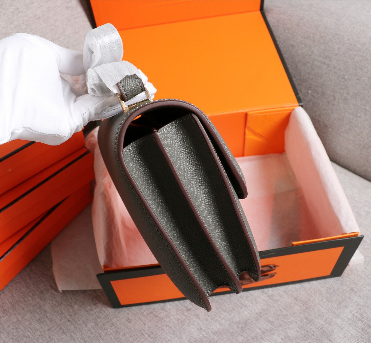HM CONSTANCE BAGS 22 PEWTER GRAY EPSOM