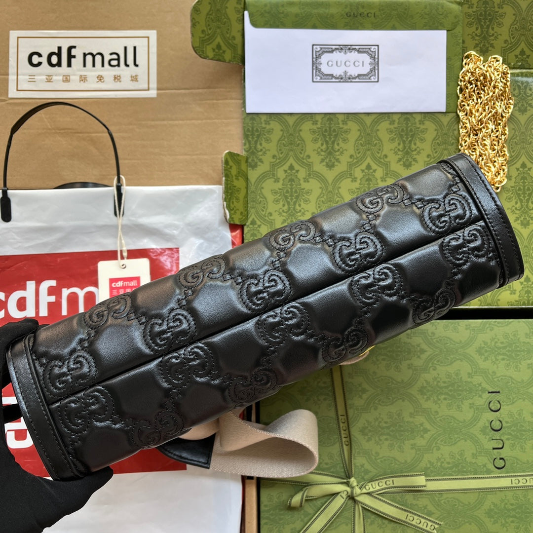 MATELASS¨¦ SHOULDER BAG 32 IN BLACK EMBOSSED CALFSKIN GOLD HARDWARE