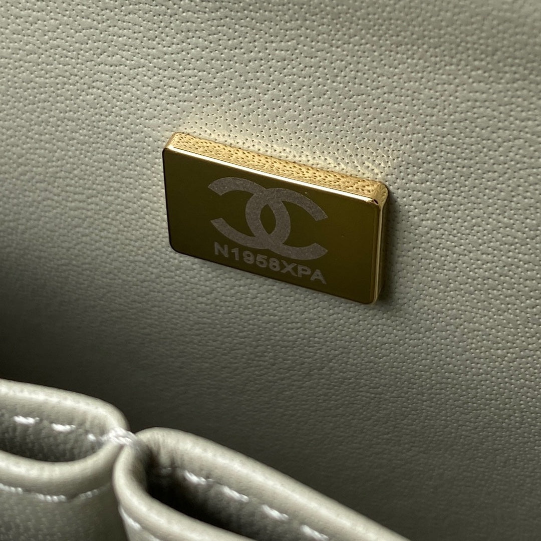 Medium Classic Flap Bag 23cm Light Grey Lambskin Gold Hardware