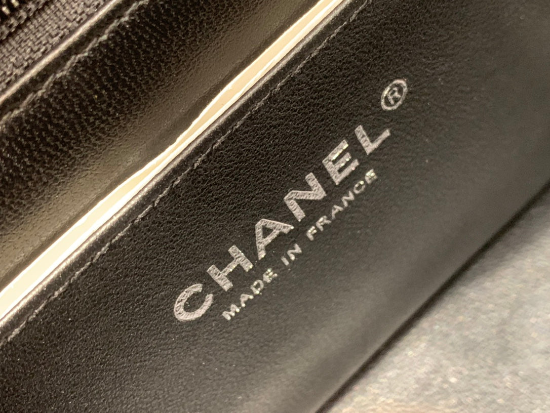MINI SQUARE FLAP BAG 17CM BLACK LAMBSKIN CHEVRON BLACK HARDWARE