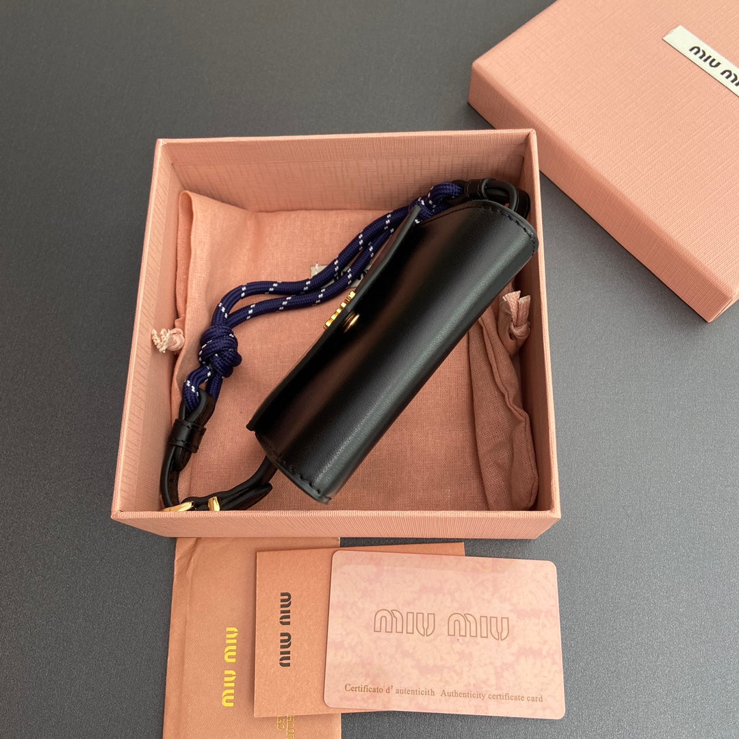 Miu Logo Wallet On A Chain 10.5 Lettering Black Calfskin 240406