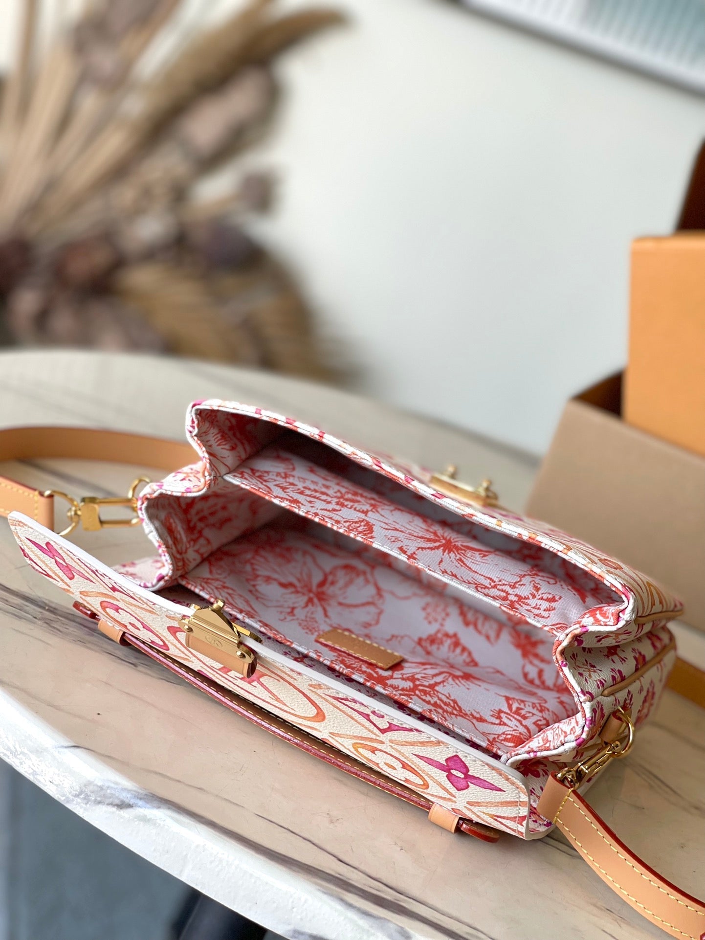 POCHETTE M¨¦TIS 25 IN CORAL MONOGRAM TILES CANVAS GOLD HARDWARE