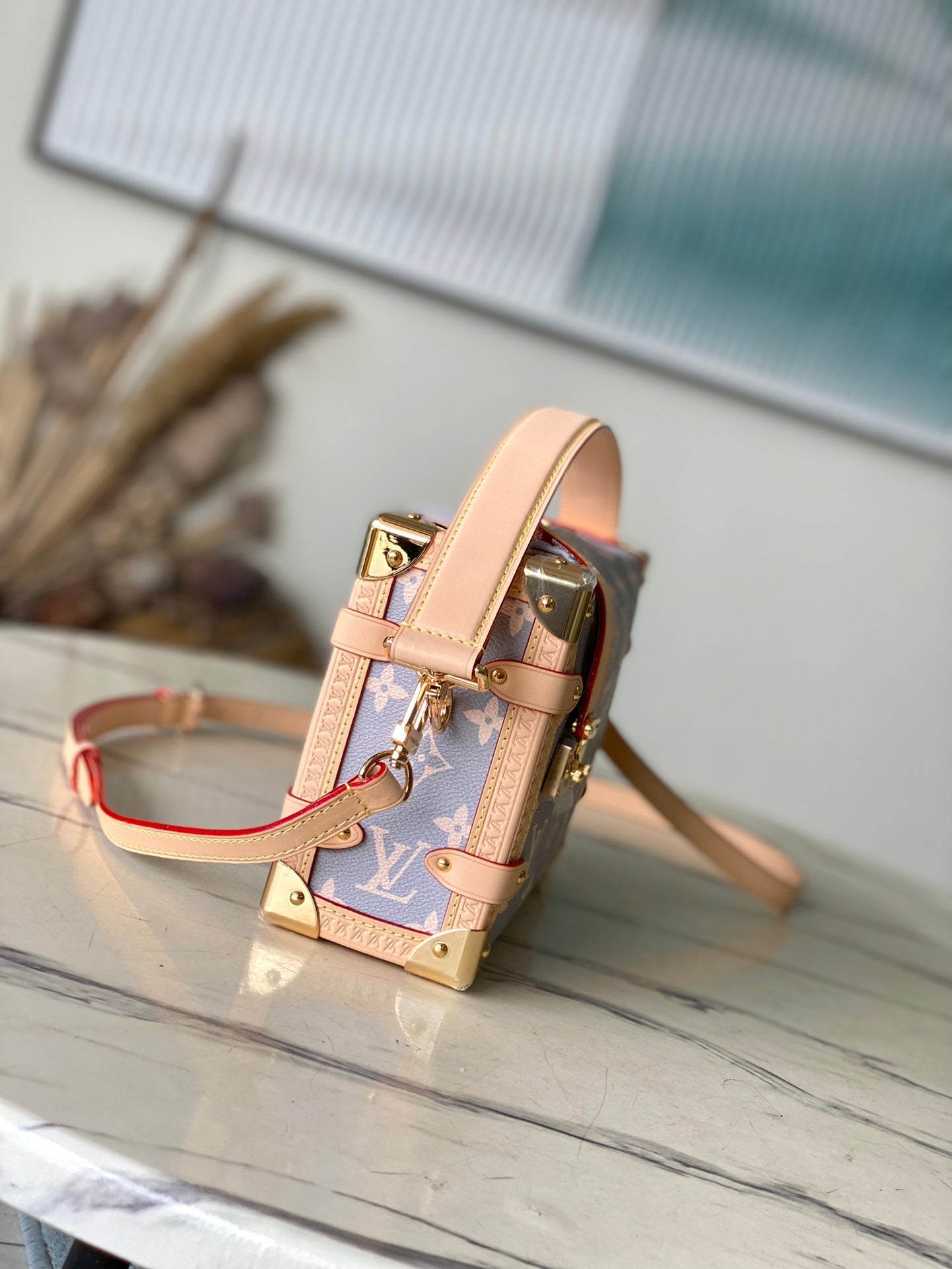 SIDE TRUNK 21 IN GRAY CREAM MONOGRAM TRIANON CANVAS GOLD HARDWARE
