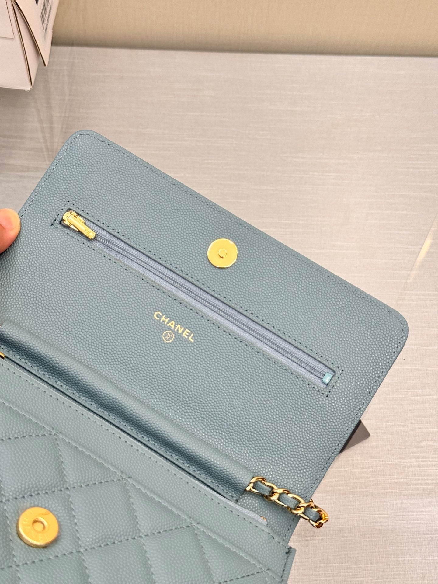 WOC 19CM CLOUD BLUE CAVIAR GOLD HARDWARE